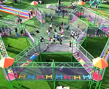 飞天城堡是无动力亲子乐园一步步进化升级衍生出来的一款大型游乐项目。成为乐园的标志性建筑。外形酷似城堡、现在的无动力乐园越来越多,如何从众多的乐园中显现出来具有高颜值与众不同的产品,肯定会更胜一筹。这款城堡共有6层,每层活动空间大小不同,通过攀爬、绳洞、闯关等独特方式进入下一层,很适合孩子来挑战。设备还配有五彩斑斓的灯光,到了夜晚格外的绚丽多彩。不管是大人还是小孩看到视频都想去打卡。